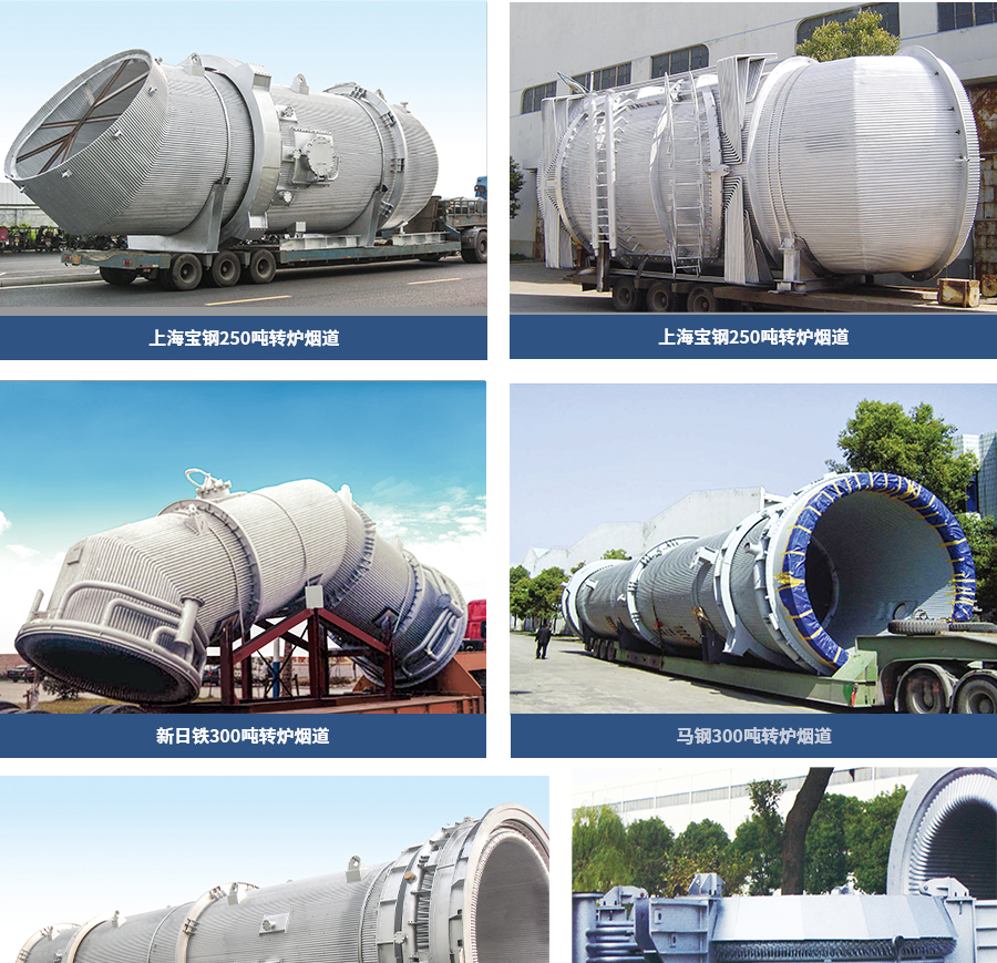 從1990年開始設(shè)計制造煉鋼轉(zhuǎn)爐容量從15噸到300噸轉(zhuǎn)爐的煙道。煙道壓力從0.8Mpa~4.0Mpa。