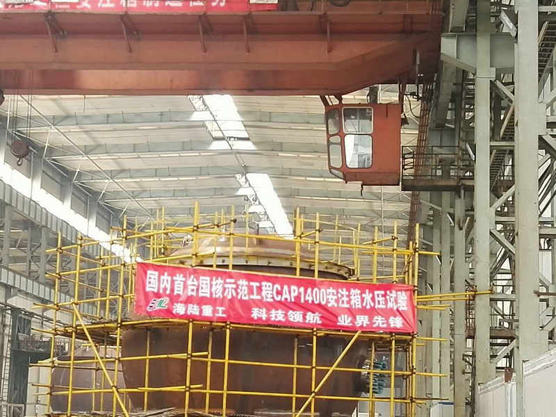 2017年4月25日16時20分,CAP1400示范工程1號機(jī)組首臺安注箱在海陸重工核電車間水壓試驗(yàn)順利完成!