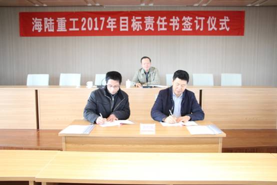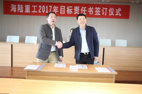 2月6日,新春伊始,為實(shí)現(xiàn)公司的持續(xù)快速發(fā)展,順利完成年度經(jīng)營(yíng)計(jì)劃,貫徹落實(shí)公司績(jī)效管理政策, 2017《績(jī)效目標(biāo)責(zé)任書》的簽訂儀式。責(zé)任書明確了公司事業(yè)部和責(zé)任主體的權(quán)利與義務(wù),并對(duì)各事業(yè)部經(jīng)營(yíng)與管理任務(wù)指標(biāo)進(jìn)一步量化了考核標(biāo)準(zhǔn),在公司原有考核獎(jiǎng)勵(lì)機(jī)制、績(jī)效考評(píng)等基礎(chǔ)上進(jìn)行了優(yōu)化與改進(jìn)。會(huì)上董事長(zhǎng)徐元生做了重要講話,徐總指出一年之際在于春,2017年各部門目標(biāo)責(zé)任書的簽訂,對(duì)于公司的未來發(fā)展,意義非凡。目標(biāo)責(zé)任書的簽訂,只是一個(gè)起點(diǎn),這個(gè)起點(diǎn)是理性的,務(wù)實(shí)的,也是富有激情的。最后,徐總希望簽約的各位領(lǐng)導(dǎo)干部壯志在我心,揚(yáng)鞭在腳下,快速地行動(dòng)起來!用樂觀自信的態(tài)度,拿出全力以赴的精神,充分展現(xiàn)自己的才能,注重上下團(tuán)結(jié)協(xié)作,發(fā)揮自己聰明才智,創(chuàng)造出海陸重工2017年新的輝煌。